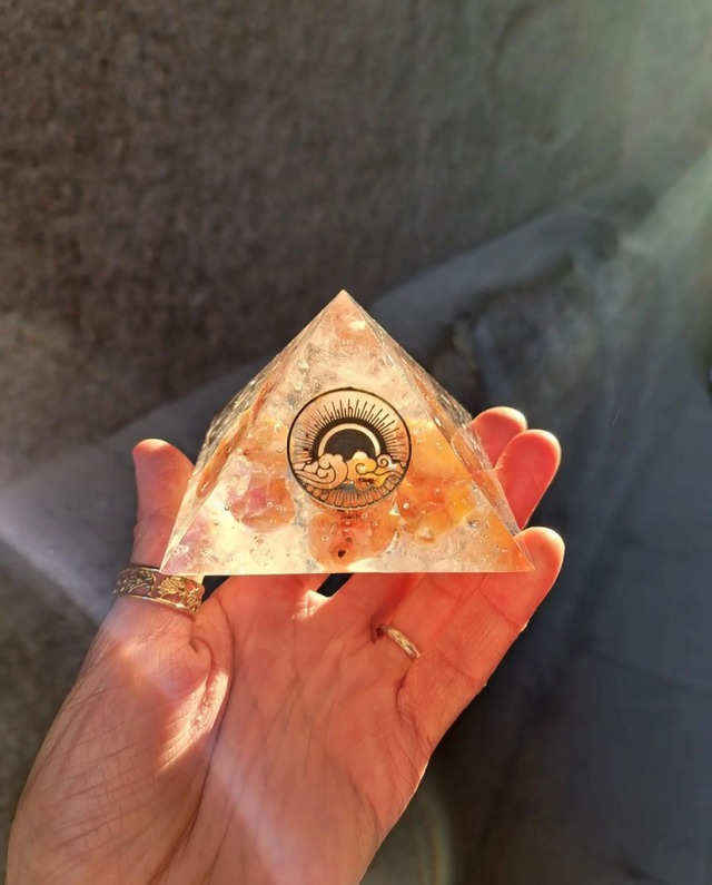 ライオンズゲート・限定オルゴナイト 【Lemurian Goddess(レムリアの女神)】 オルゴンピラミッド(オルゴナイト)は、自然界に存在する生命エネルギーを吸収し、ポジティブなオルゴンエネルギーを発生する装置の事です。 金属と天然石を樹脂で固めて作られますが、金属や樹脂などの有機物がマイナスエネルギーや電磁波を吸収し、天然石などの無機物がプラスエネルギーに変えてくれると言われています。 クリスタルは樹脂の中で適度な圧力がかかるとピエゾ効果で微弱電位を発生します。 ーーーーーーーーーーーーーーーーーーーーー 一瞬で華やかな気持ちにさせてくれるこのピラミッドの中には、ピンクレムリン・ローズクォーツ・クリアクリスタルが詰まっており、女性性・女神性を立ち上がらせてくれます。 感性・感覚もますます豊かに、 魂と肉体、空間全体を調和に導きます。 今回は特別に、エジプトのエナス神殿、デンデラ(ハトホル)神殿、そしてピラミッドでは夏至のパワフルなエネルギーを転写。 太陽が獅子座に帰還し、自己の変容が加速するこのライオンズゲート。 自己の中心に還るタイミングでもあります。 ぜひこの機会にパワフルなオルゴンピラミッドをお迎え下さい。 ーーーーーーーーーーーーーーーーーーーーー 商品詳細 ■効果 ・調和 ・感性・感覚を研ぎ澄ます ・内なる女性性・女神性の活性化 ・愛を受け取る器の拡大 ・豊かさを受け取る器の拡大 ■サイズ 縦6cm×横6cm×高さ6cm ■オルゴナイトに使用している素材 ピンクレムリア ローズクォーツ クリスタル(水晶) 金属 レジン(高透明度樹脂) ■注意事項 石、ワイヤーアートなどデザイン(形)が一つ一つ多少違いますこと、ご了承下さいませ。 ■発送について 受注制作の為、ご注文頂いてから発送まで少々お時間頂きます。発送準備整い次第ご連絡を差し上げます。どうぞ楽しみにお待ち下さい。